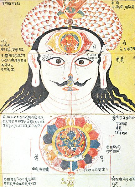 Im untersten Chakra schlummert die feurige Form der Kundalini-Schlange. Im Chakra darüber herrscht die Prana-Kundalini.